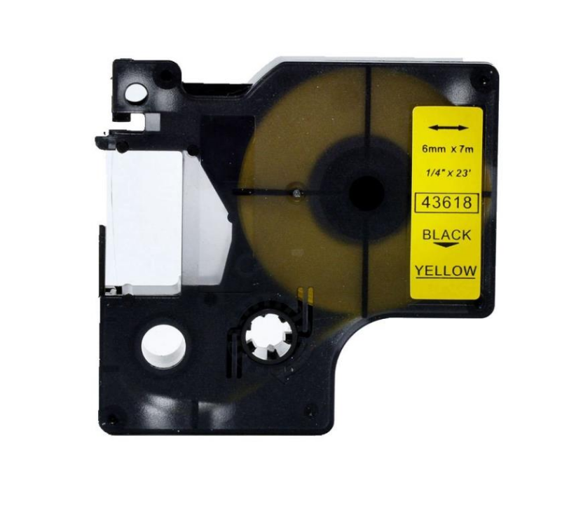 43618 – BLACK ON YELLOW – 6MM X 7M DYMO LABELMANAGER PRINTERS LABELLING D1 TAPE